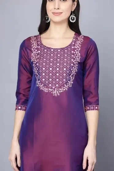 Women Embroidered Kurta (Purple)