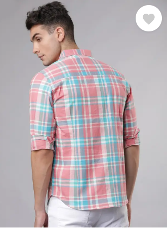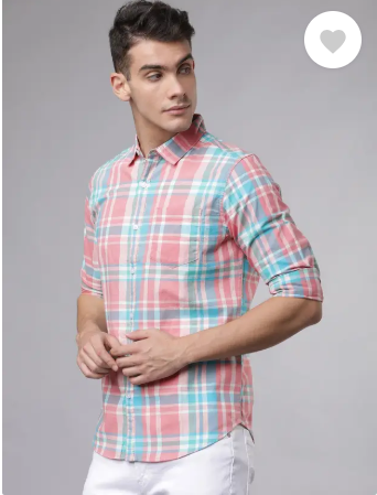 Men Slim Fit Checkered Cut Away Collar Casual Shirt