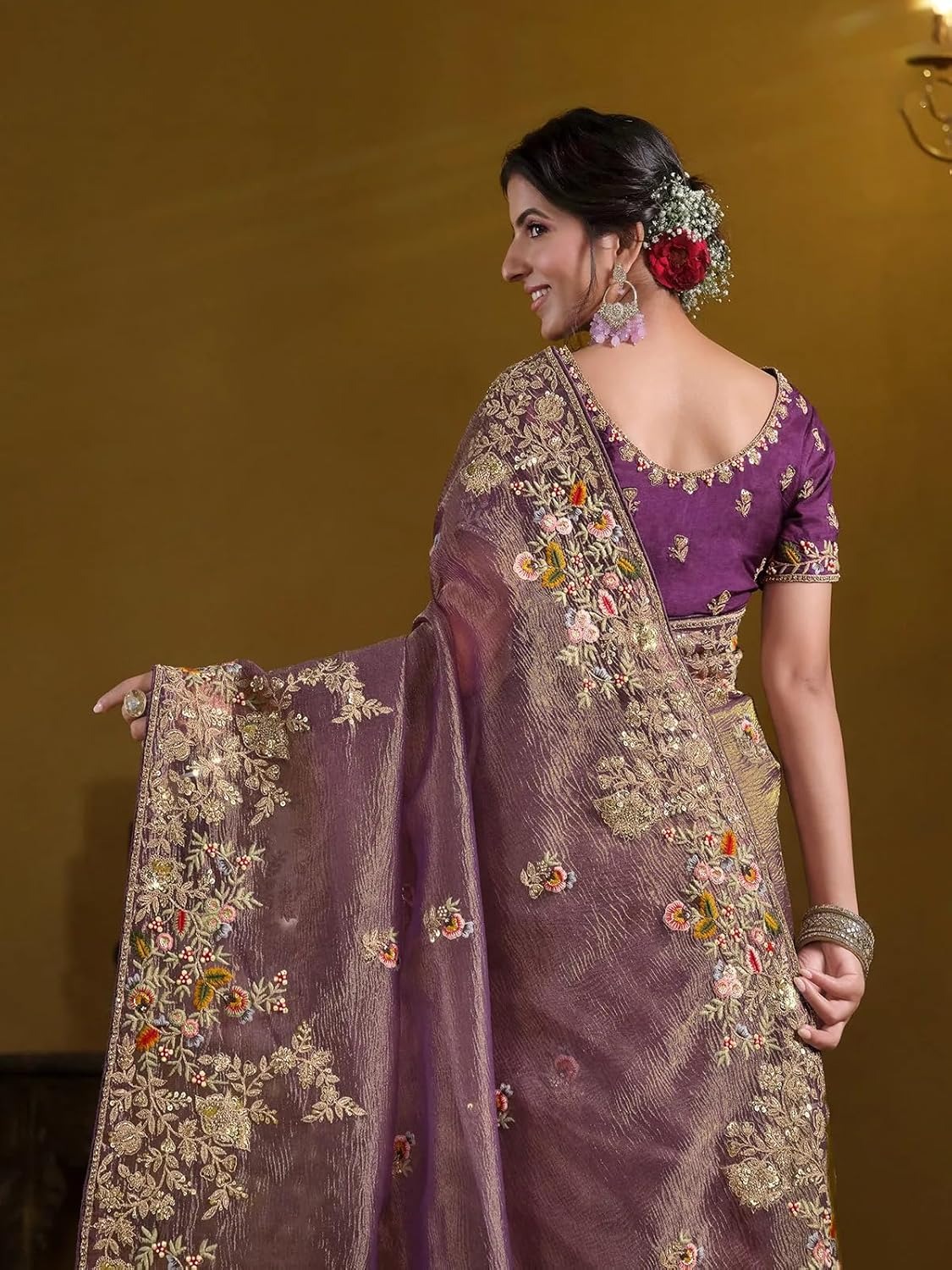 Purple Silk Saree with Embroidery Borders and Pallu Designs
