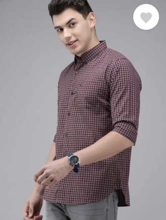 Men Slim Fit Checkered Button Down Collar Casual Shirt