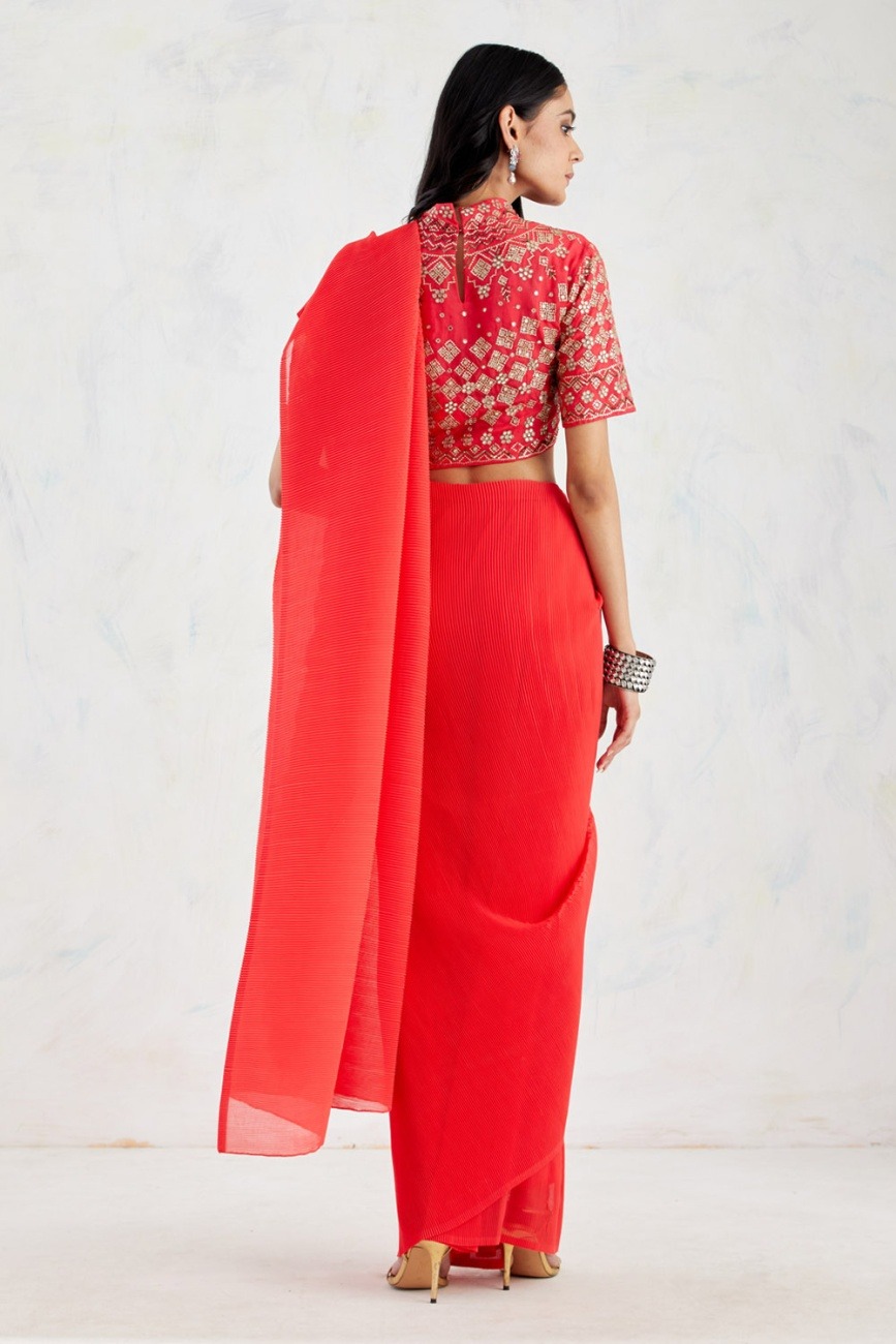 • Vermillion red saree set