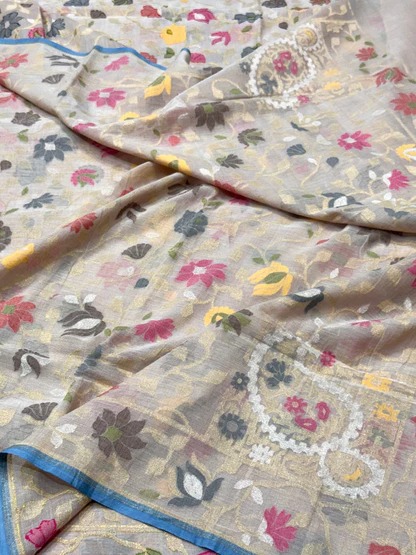 Tussar Pure Muslin Cotton Jamdani Saree