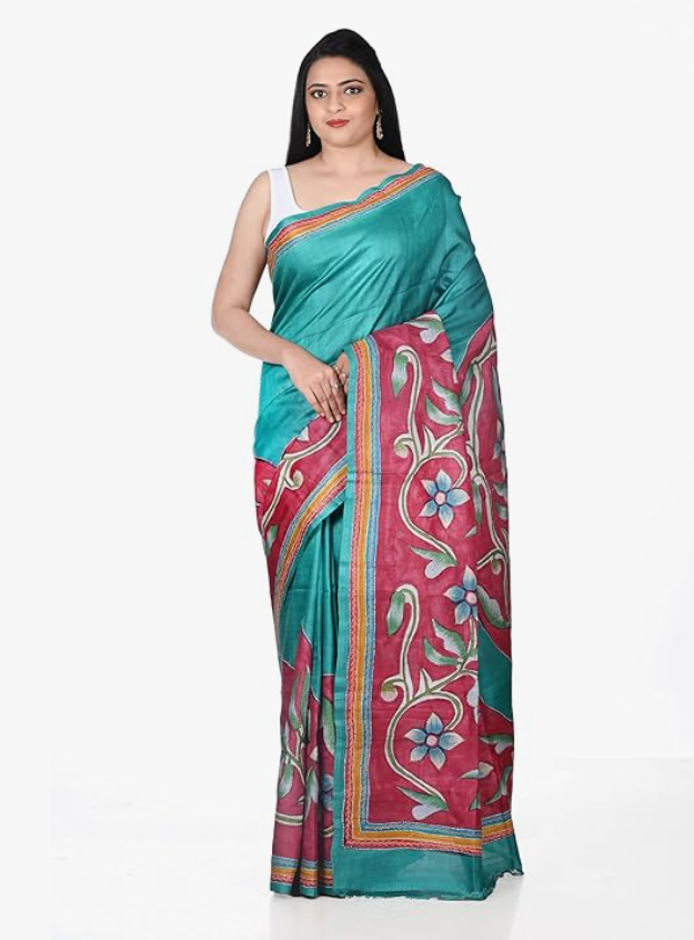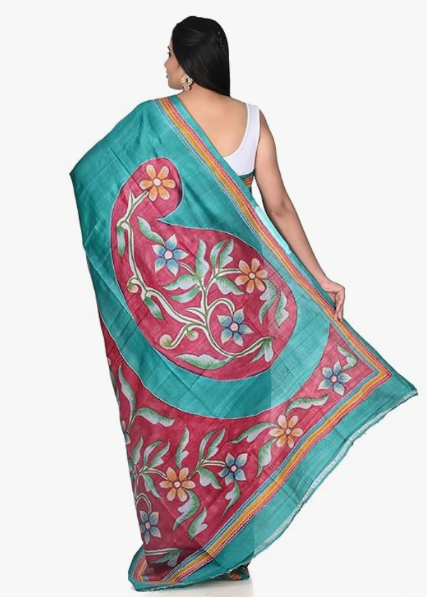 Embroidery work on Ganchi Tussar silk saree | Blue and Maroon colour | Multicolour floral design | For Party wedding occasion festival