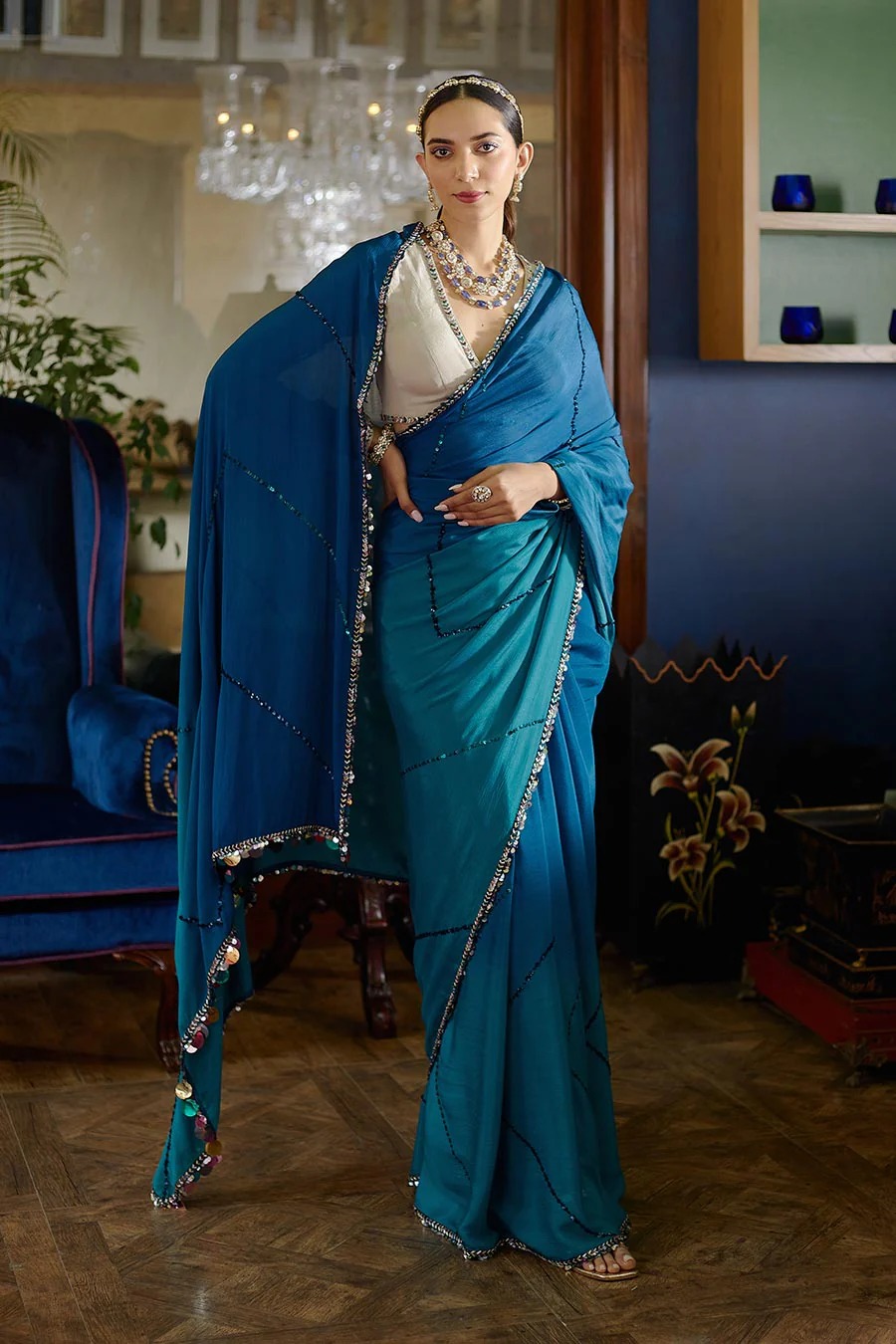 Blue Ombre Dyed Saree
