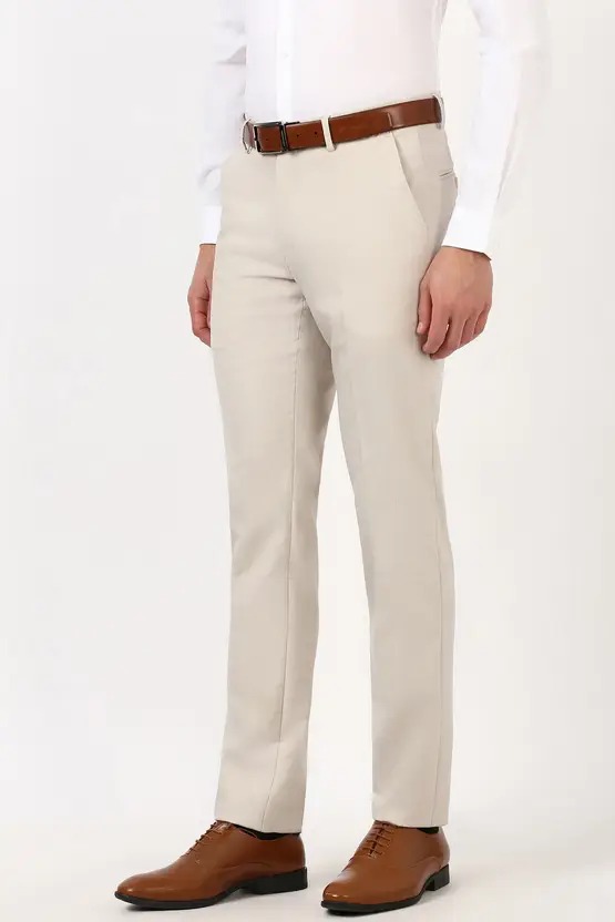 Men Slim Fit Cream Polycotton Trousers