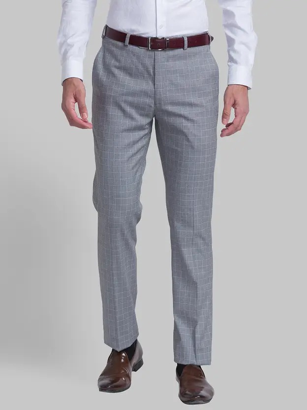 Men Regular Fit Grey Viscose Rayon Trousers