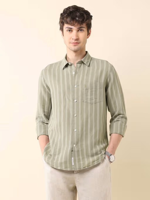 Stand out in this green shirt from U.S. POLO ASSN.. Made from cotton, this fashionable shirt is designed with full sleeves and a collar neck. Style it with a pair of jeans and sneakers to finish off the look.