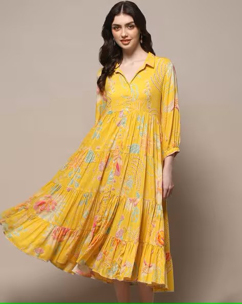 Women Floral Print Gown Dress