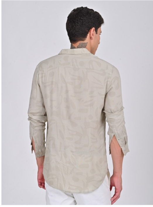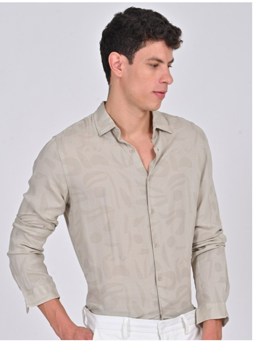 Beige solid opaque Casual shirt ,has a spread collar, button placket, na pocket, long regular sleeves, straight hem