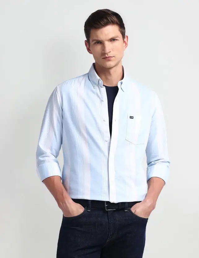 Men Slim Fit Striped Button Down Collar Casual Shirt