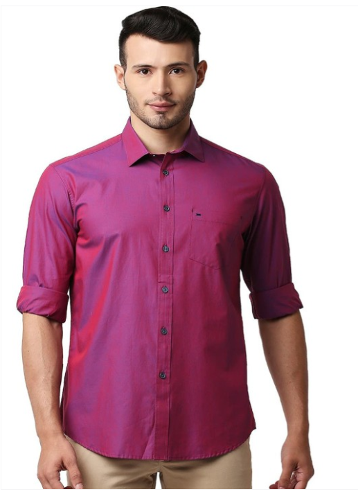 Pink solid opaque Casual shirt ,has a spread collar, button placket, 1 pocket, long regular sleeves, curved hemline