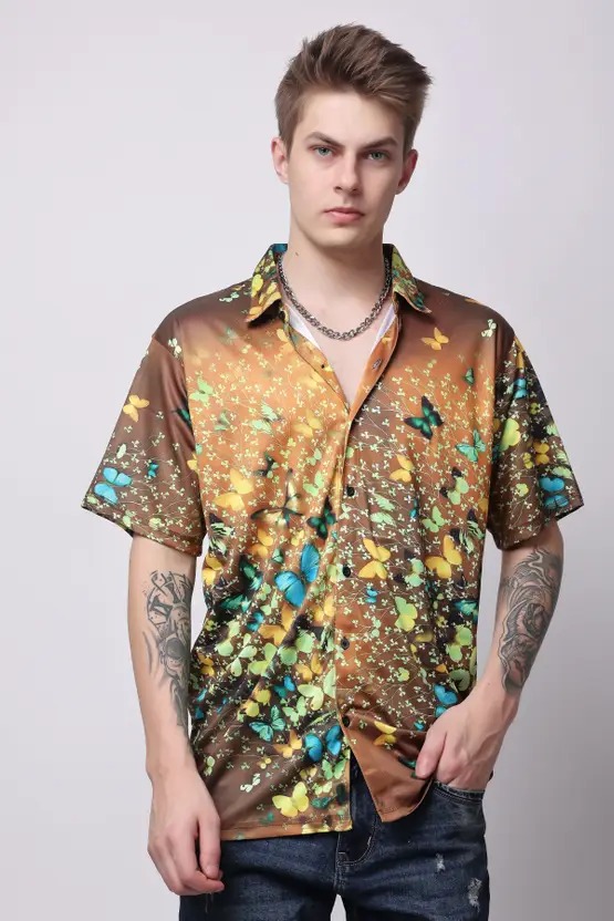 Men Regular Fit Graphic Print Spread Collar Casual Shirt