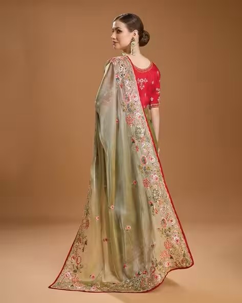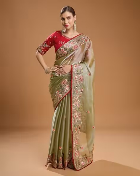 Women Embroidered Saree with Contrast Border