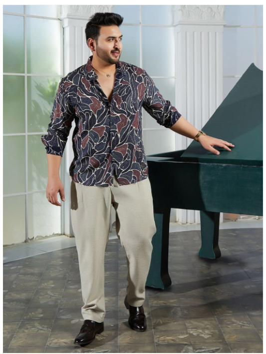 Navy blue & Brown opaque casual shirt for men