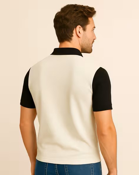 Men Colourblock Slim Fit Polo T-Shirt