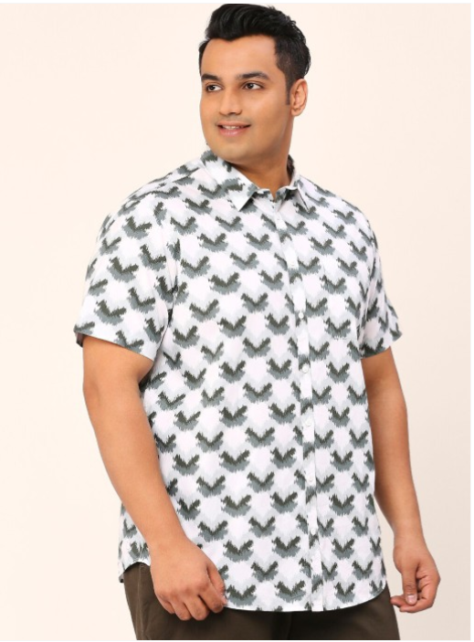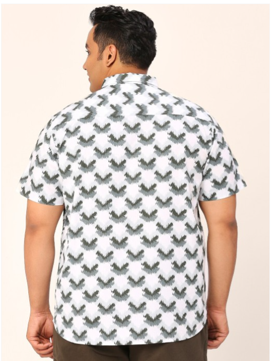 Olive green conversational printed opaque Casual shirt ,has a spread collar, button placket, 1 patch pocket, short regular sleeves, curved hem