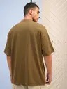 Men Printed Round Neck Cotton Blend Brown T-Shirt