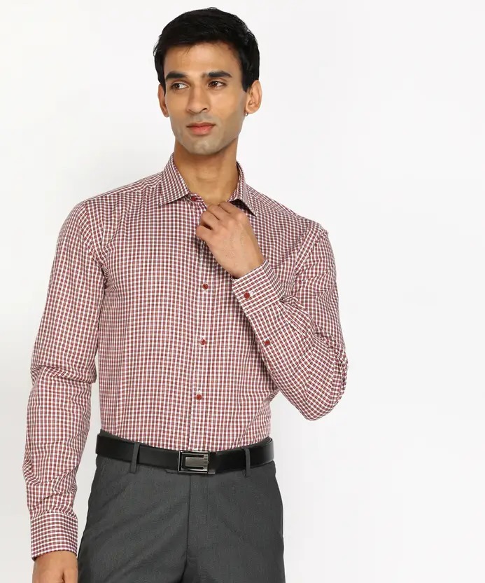 Men Slim Fit Checkered Spread Collar Formal Shirt