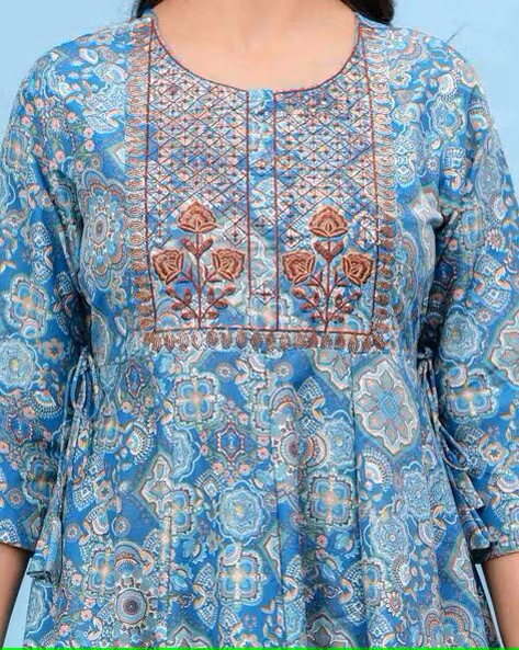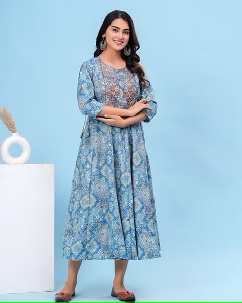 Women Floral Round Neck Anarkali Kurti