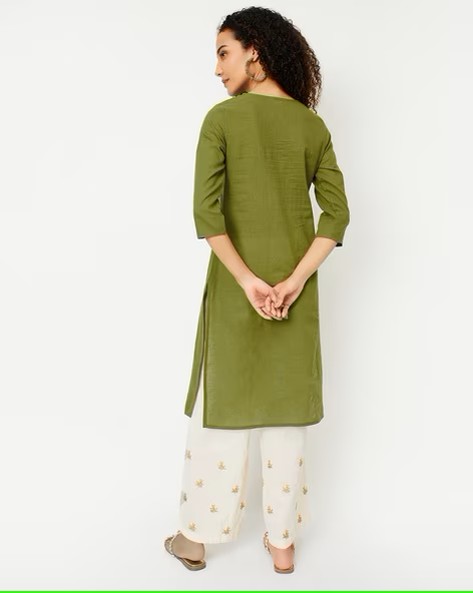 Women Embroidered Straight Kurta