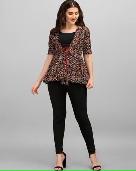 Women Printed No Darts Angrakha Tunic